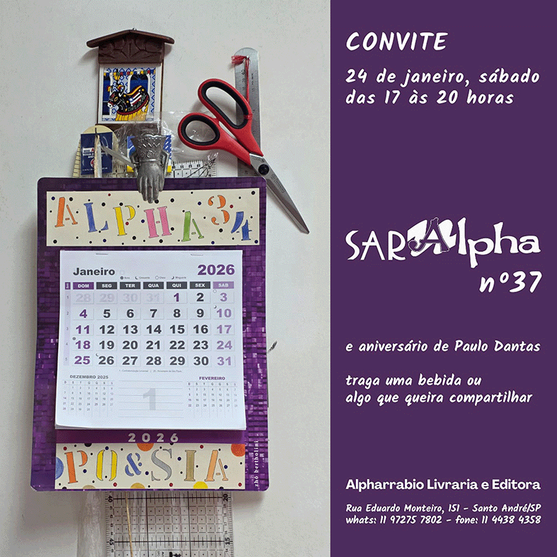<p dir="auto">SarAlpha, um momento para ler poesia, cantar, tocar ou simplesmente trocar ideias. Esta atividade foi idealizada e é coordenada pelo poeta Paulo Dantas e conta com a colaboração do também poeta Zhô Bertholini.</p>